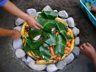 Pachamanka: Comida grupal tradicional, preparada dentro la tierra sobre piedras volcánicos.